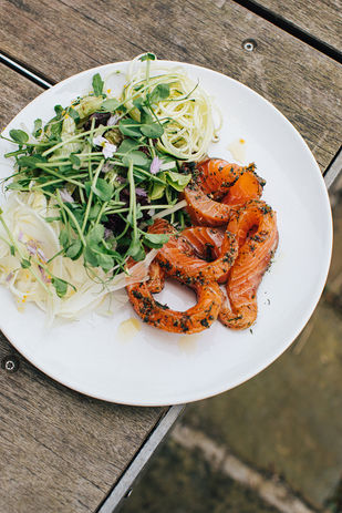 LE GRAVLAX - Exemple de recette associée : Filet de saumon Gravlax, salade de chou-rave et pomme, zeste d’orange